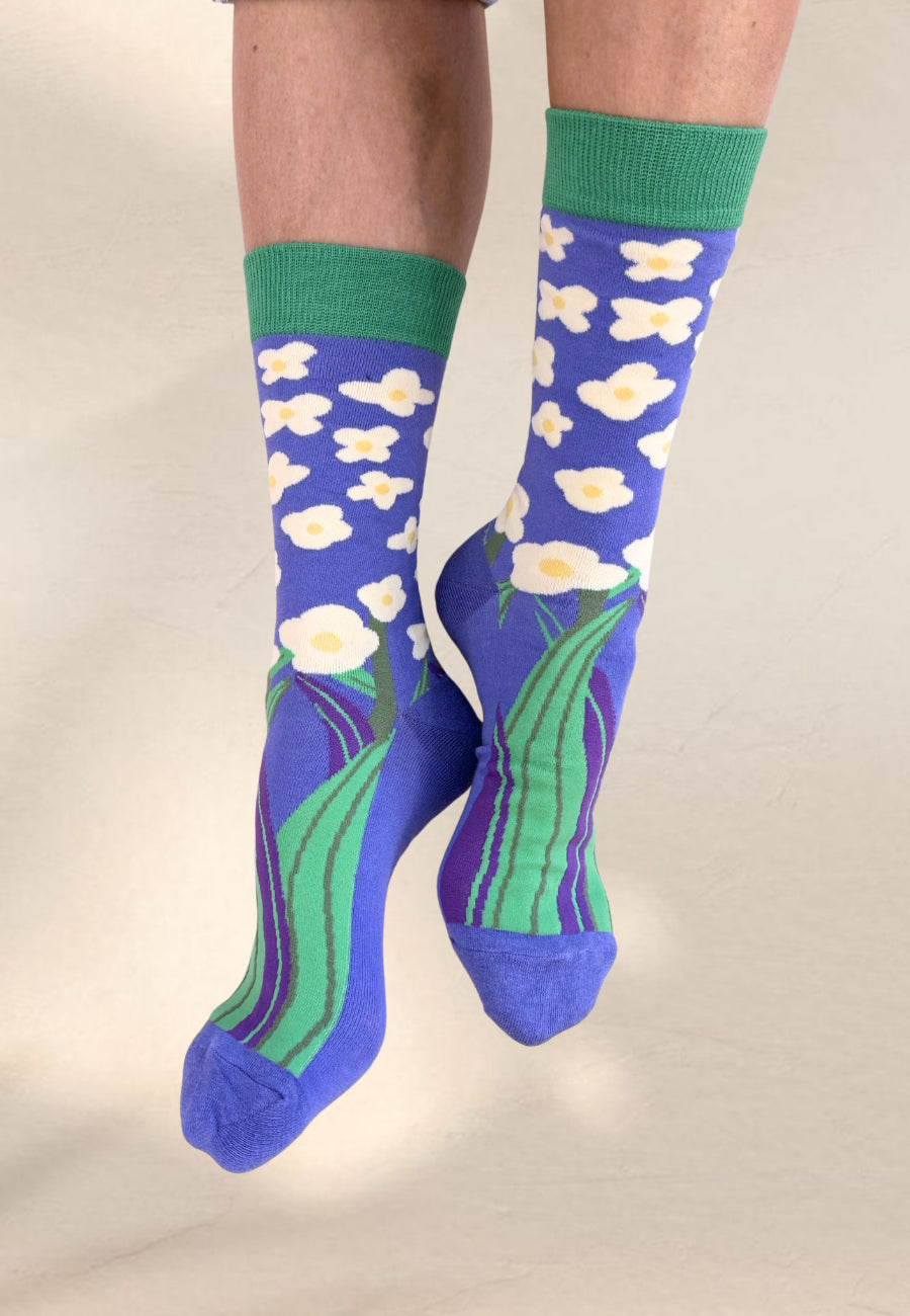 Realizzati in un tessuto morbido e traspirante, questi calzini garantiscono comfort per tutto il giorno, mostrando una stampa giocosa di fiori che sicuramente delizierà. Che tu sia a casa, al lavoro o in avventura, questi calzini aggiungono un tocco divertente a qualsiasi outfit.