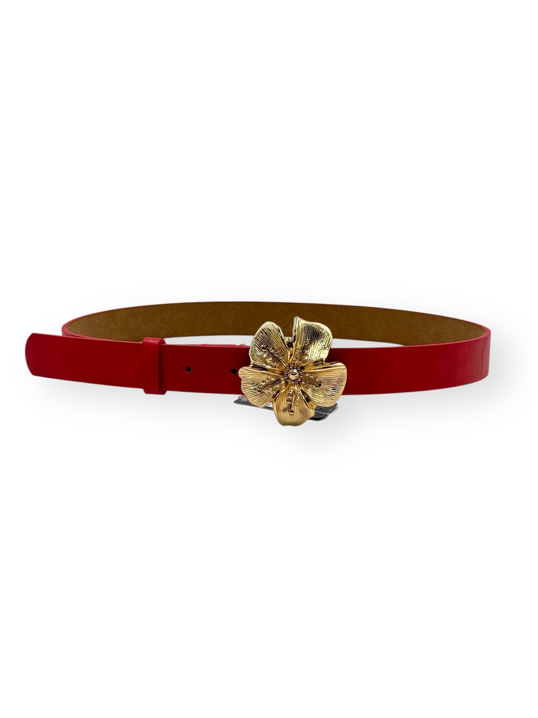 Cintura in ecopelle altezza 2,5 cm con fibbia a forma di fiore.