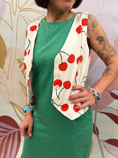 Gilet con fantasia ciliegie, puoi indossarlo anche come top, foderato.