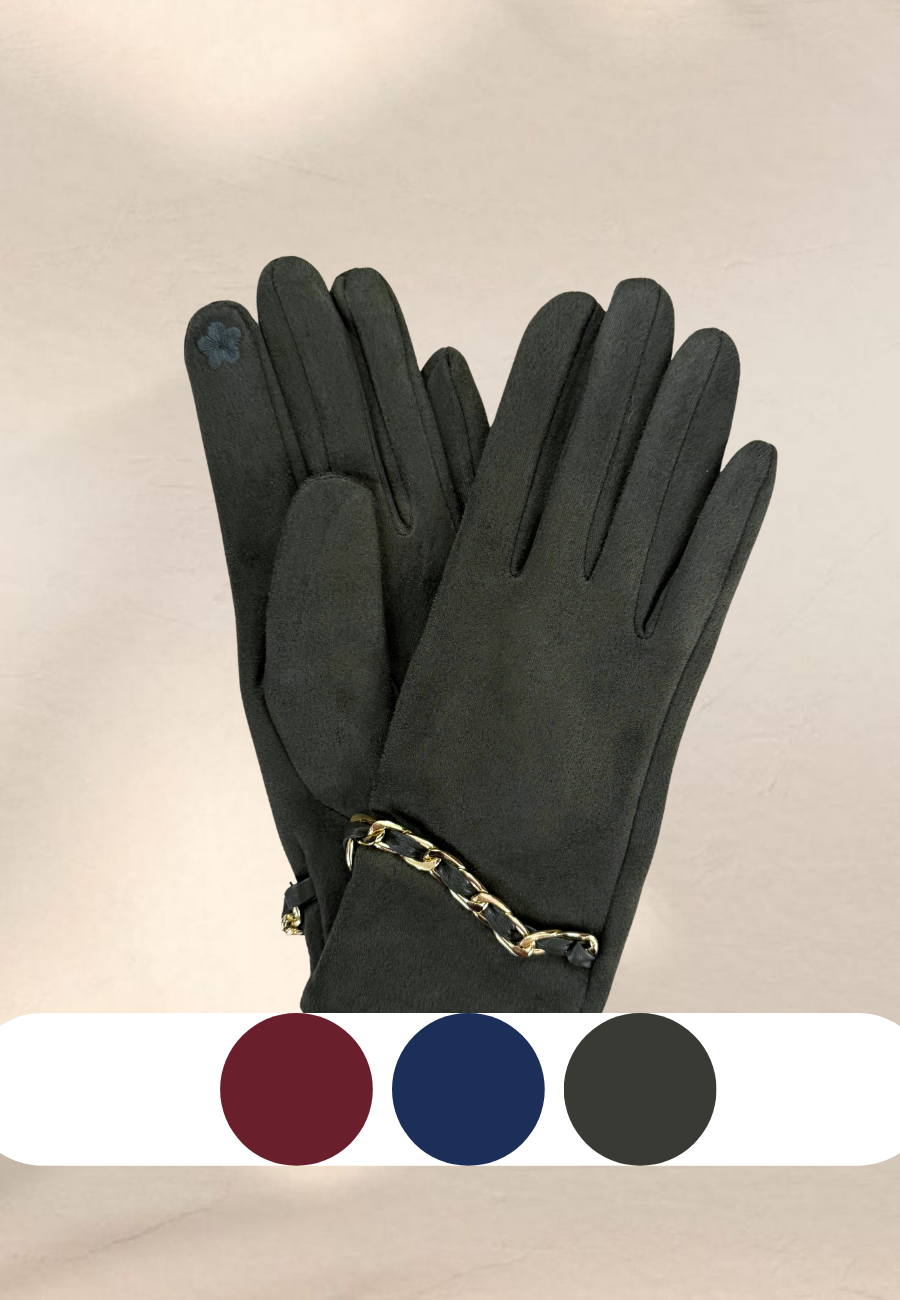 Guanti in taglia unica con dettaglio dorato.