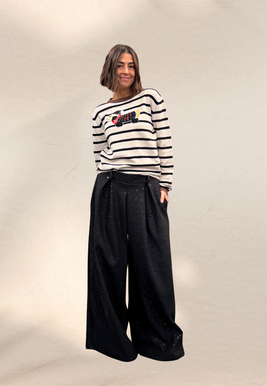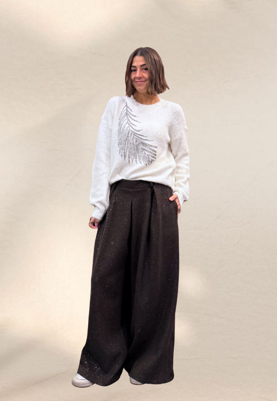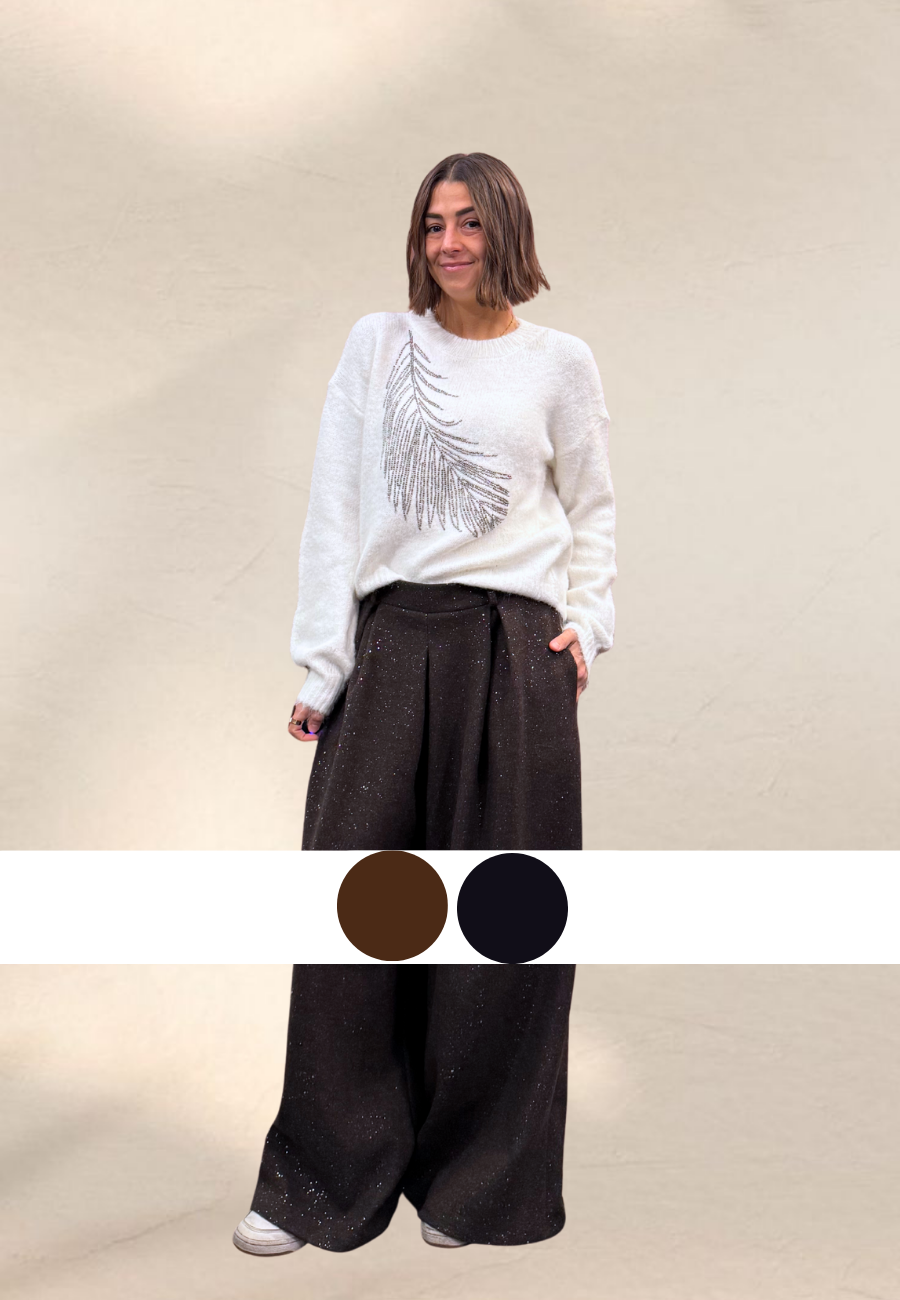 Pantagonna comodissimo con elastico in vita con tessuto glitterato.