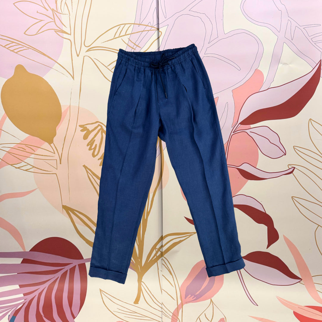 Pantalone con laccio ed elastico in vita. 100% lino