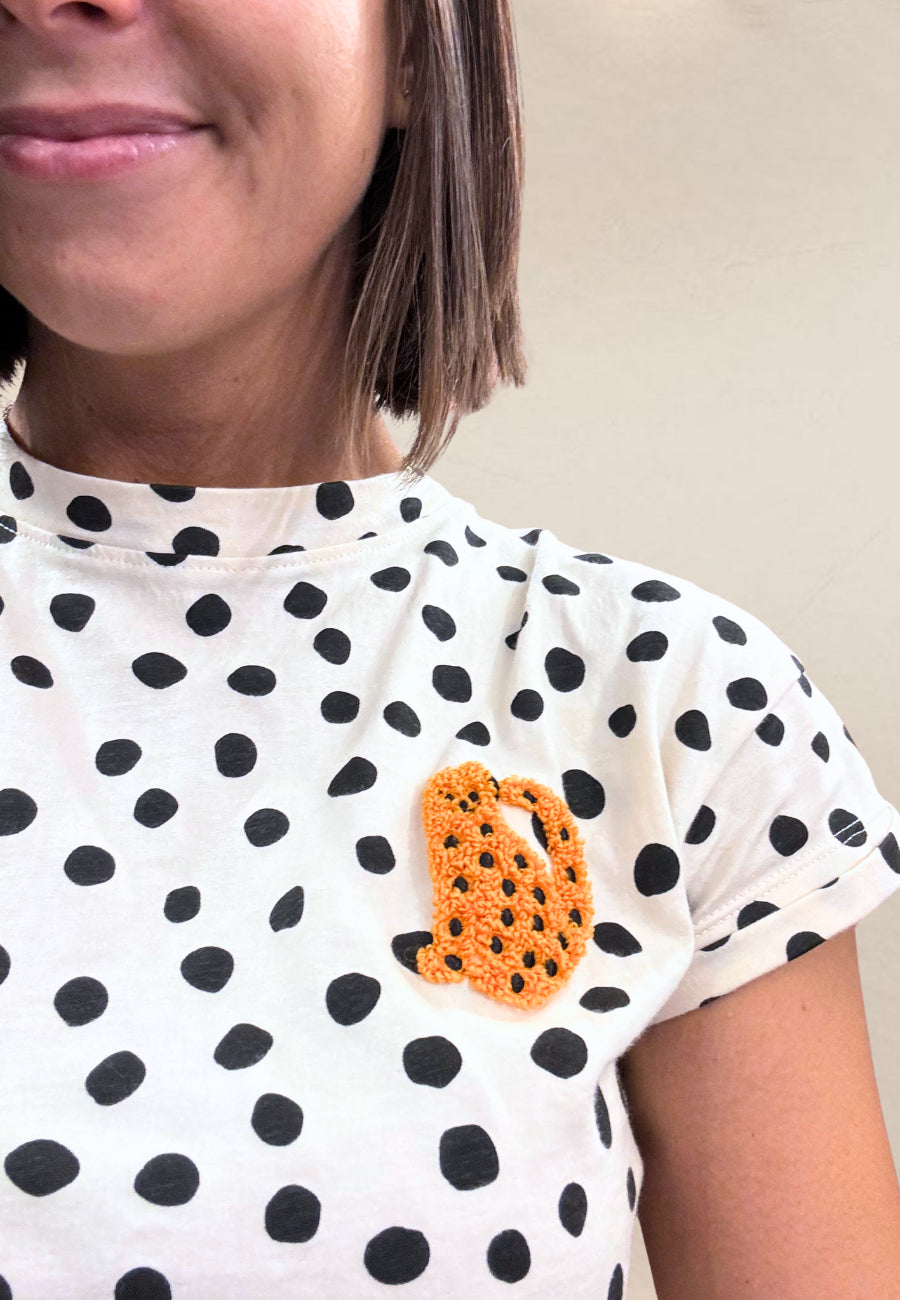 T-Shirt a pois con patch "Punch", vestibilità regolare e risvoltino sulla manica.